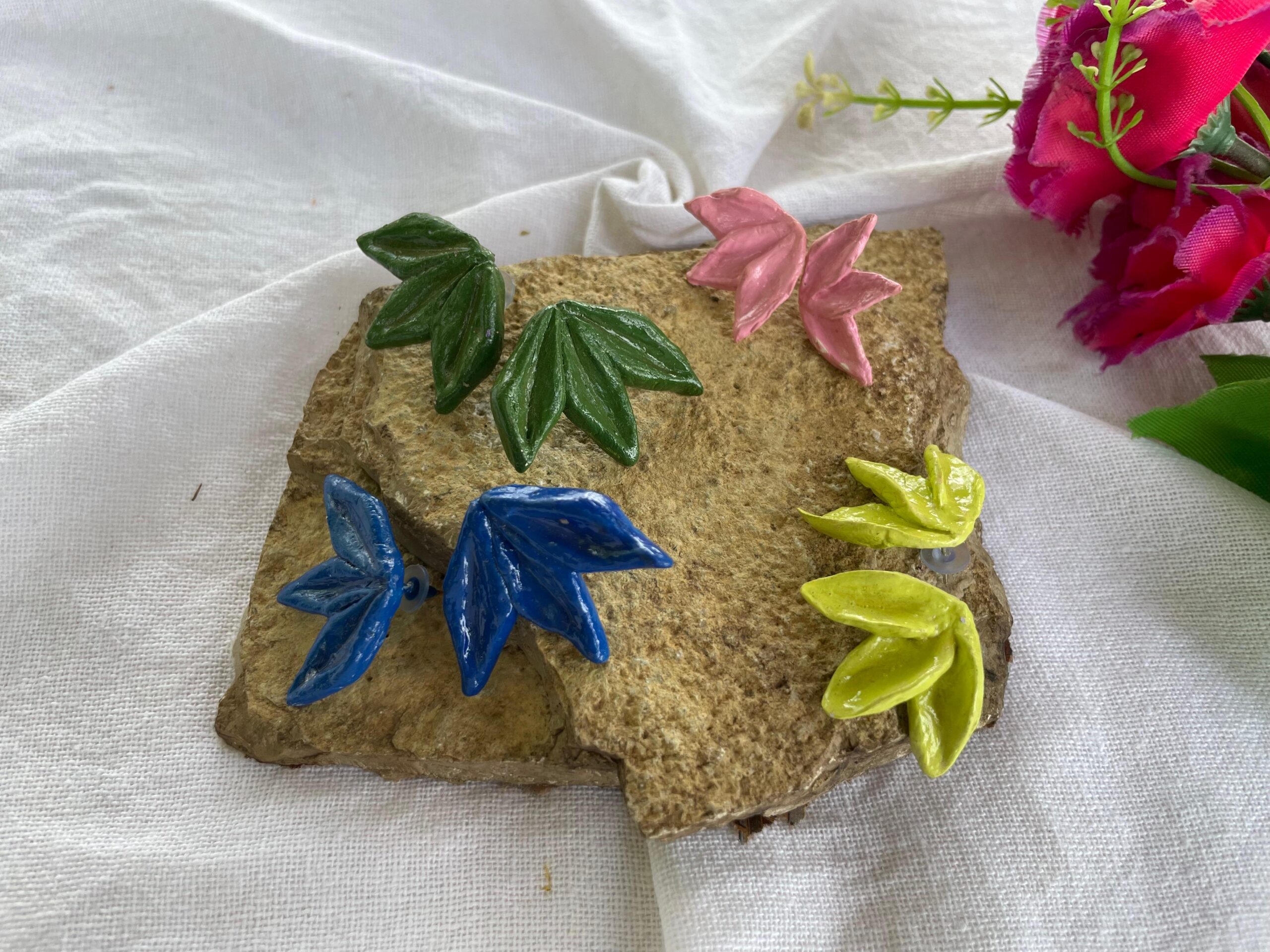 Lightweight, artsy, petal shaped clay earrings available in four colours:-