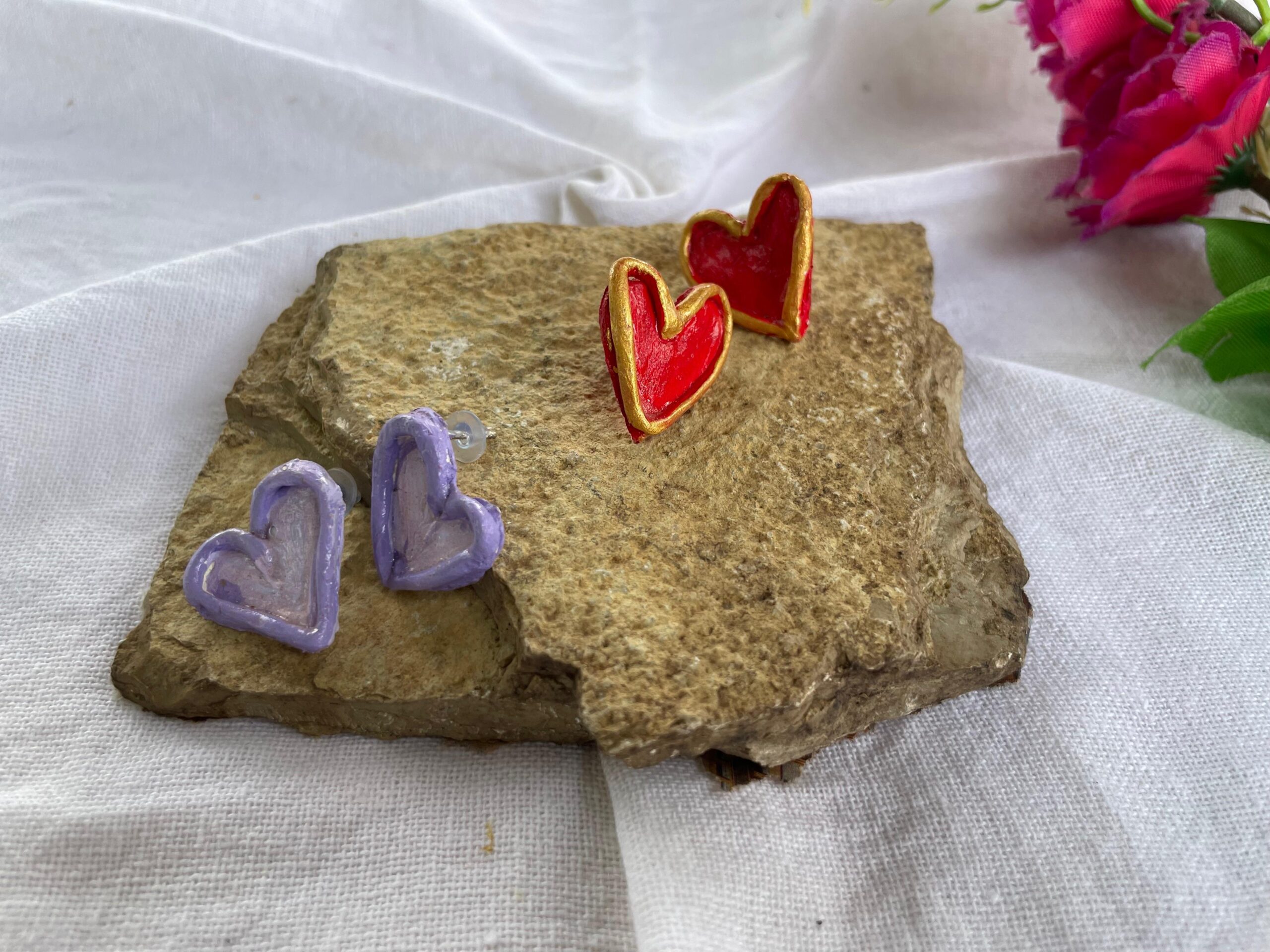 Lightweight, artsy, heart shaped clay earrings